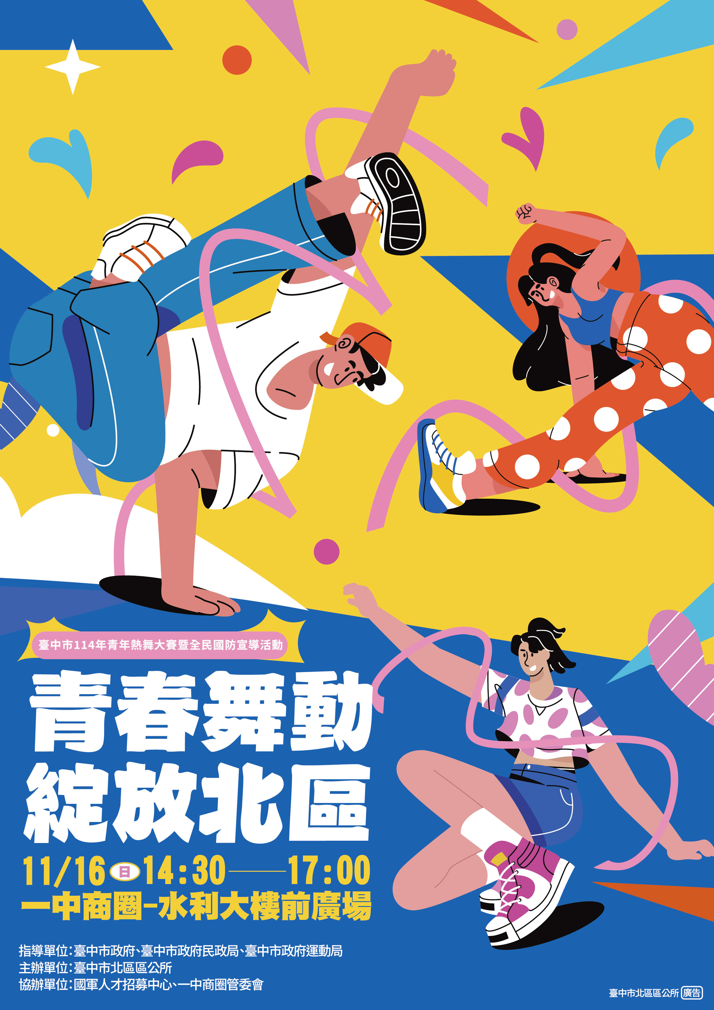 轉知:臺中市北區區公所辦理「臺中市114年青年熱舞大賽暨全民國防宣導活動」